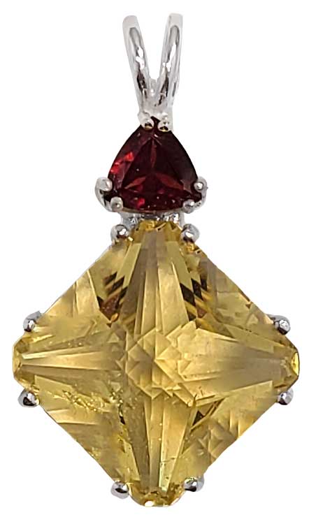 Siberian Gold Quartz Small Magician Stone™ with Trillion Cut Garnet