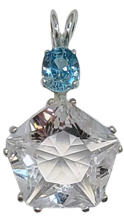 Clear Quartz Star of Venus™ With Oval Cut Blue Zircon